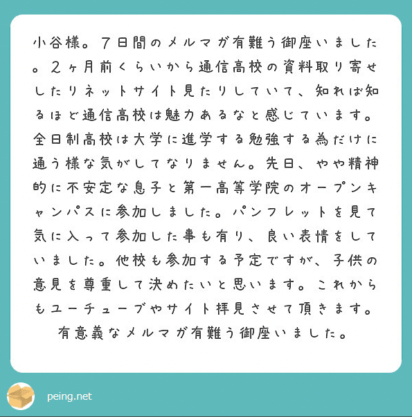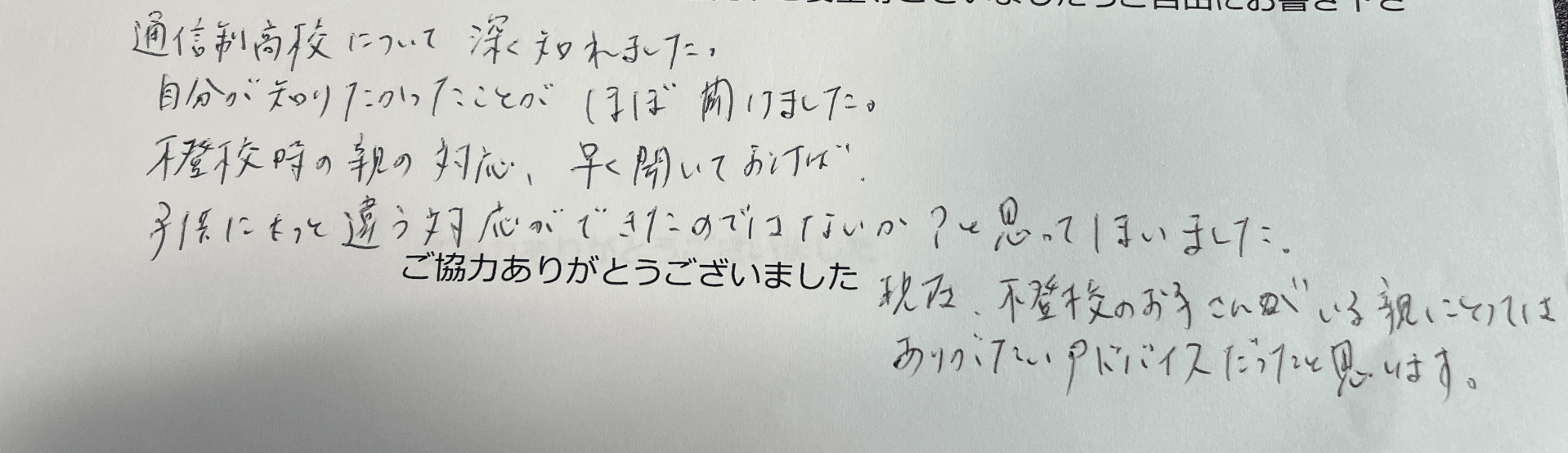 ・ 通信制高校について不明点・分からないことがあれば小谷がその場で学校に問い合わせて確認する