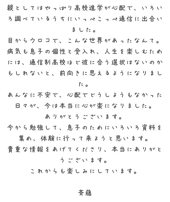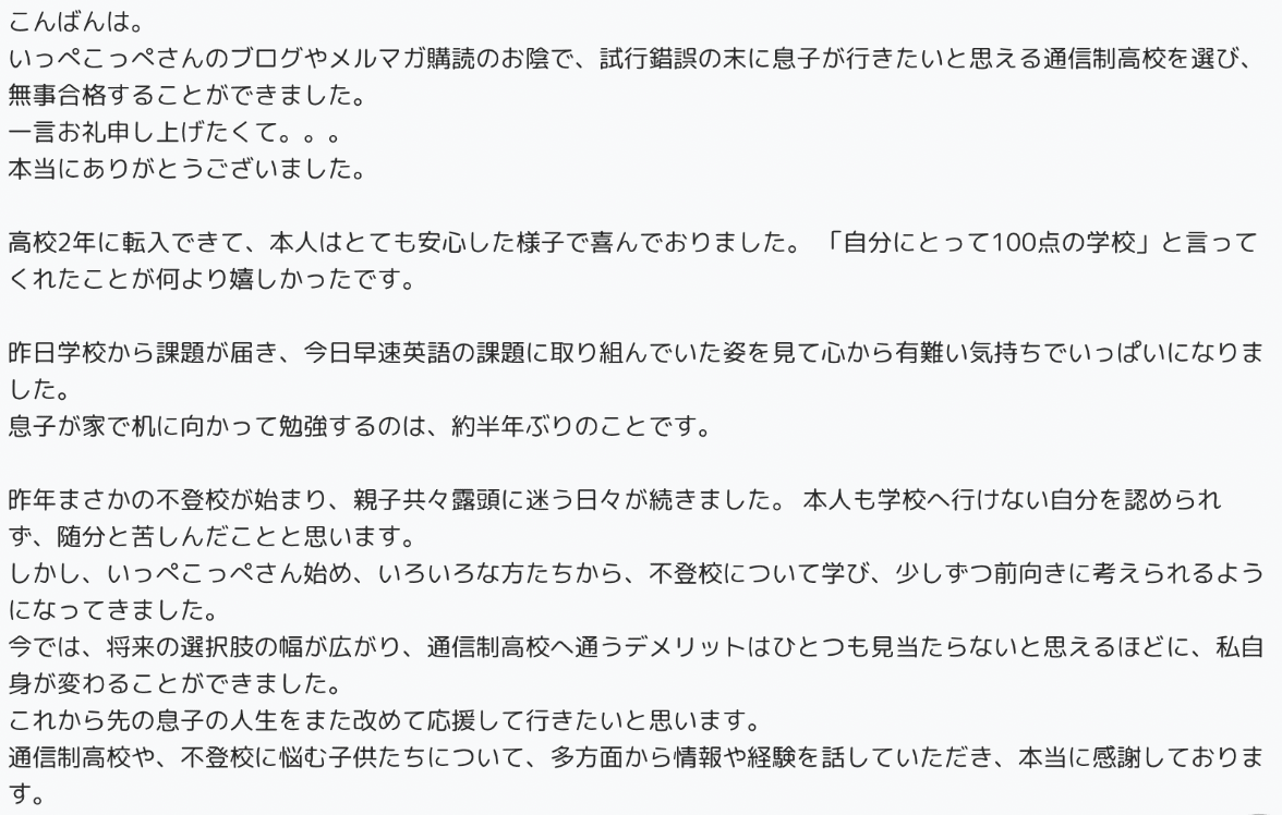 といったように、通信制高校選びや不登校中の進路支援までをサポートさせて頂いております。